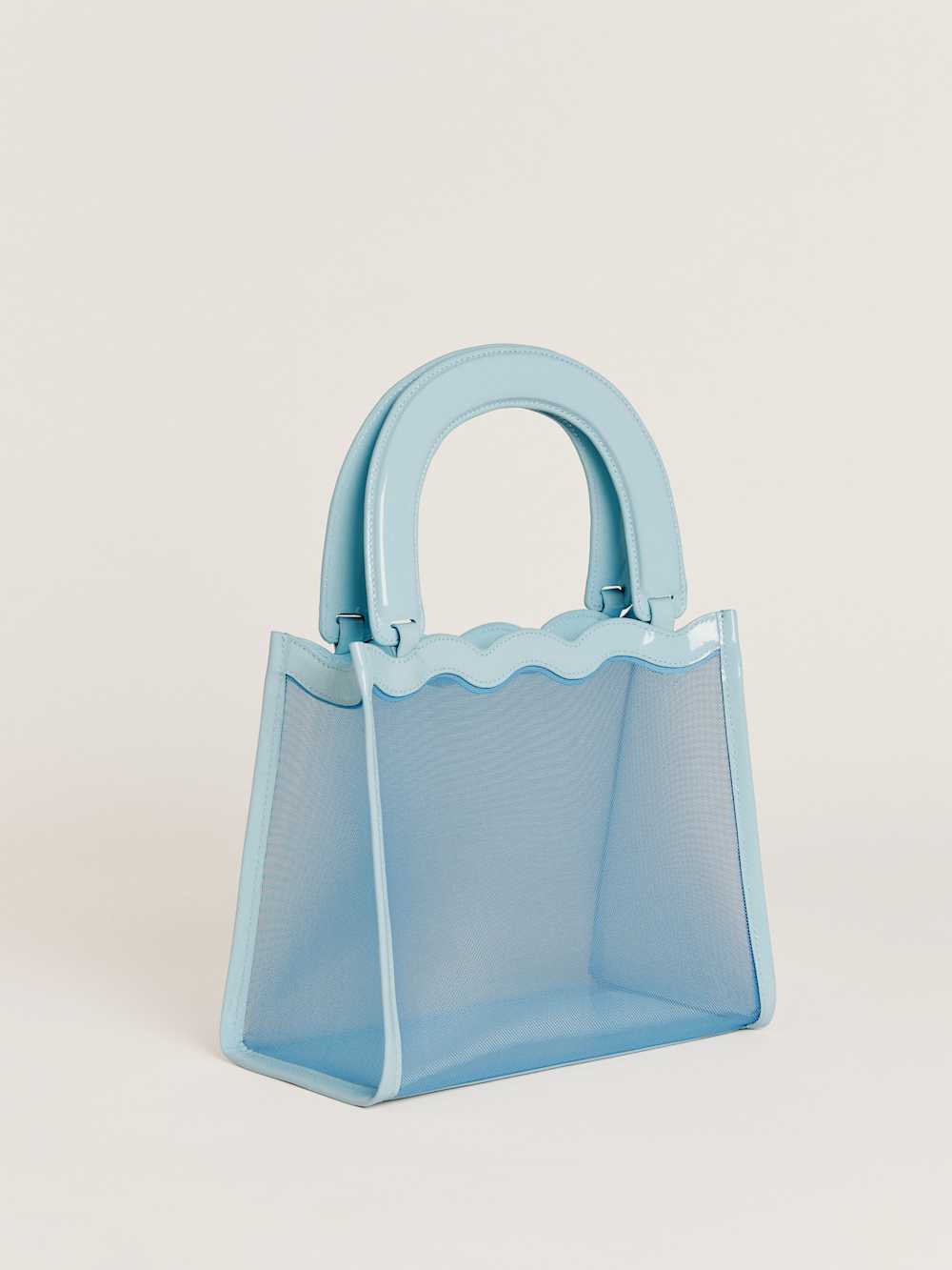 Hold me. Shop the Emma Mini Bag from Reformation, a mini bag with a top handle and scalloped trim.