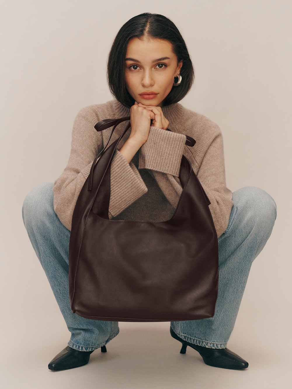 Extra baggage. Shop the Medium Vittoria Bag from Reformation, a slouchy leather tote with a magnetic closure.