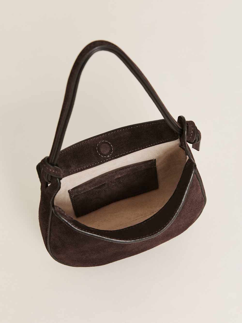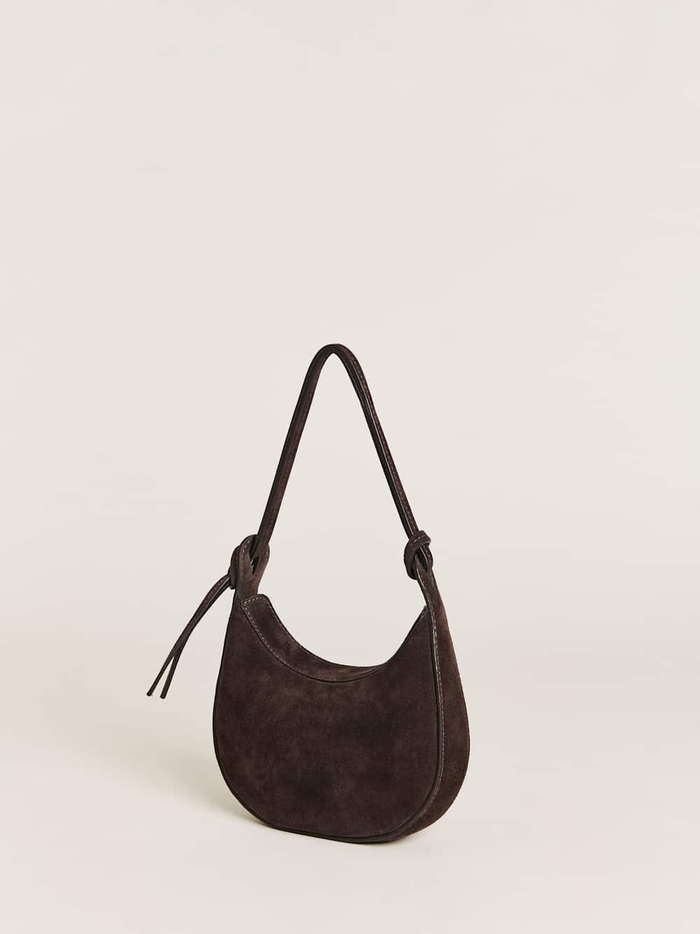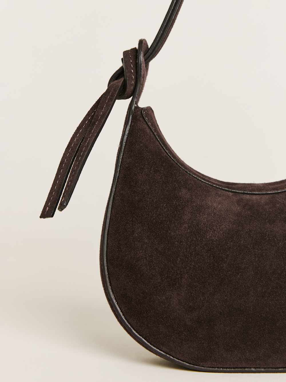 Hold me. Shop the Mini Rosetta Shoulder Bag from Reformation, a crescent shaped leather shoulder bag with a decorative tie detail and magnetic closure.