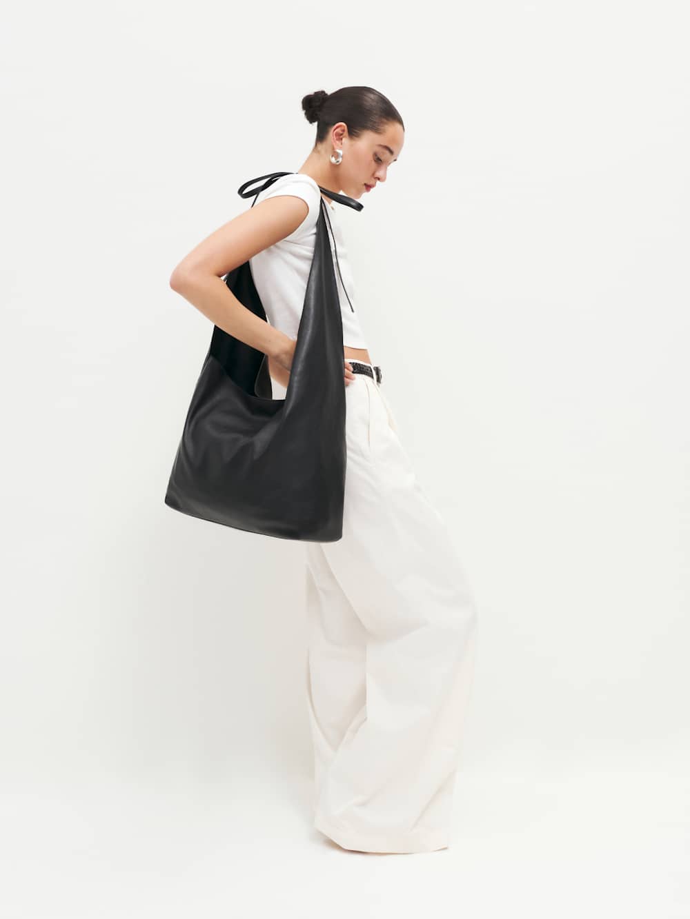 Extra baggage. Shop the Oversized Vittoria Tote from Reformation, a slouchy leather tote with a magnetic closure.