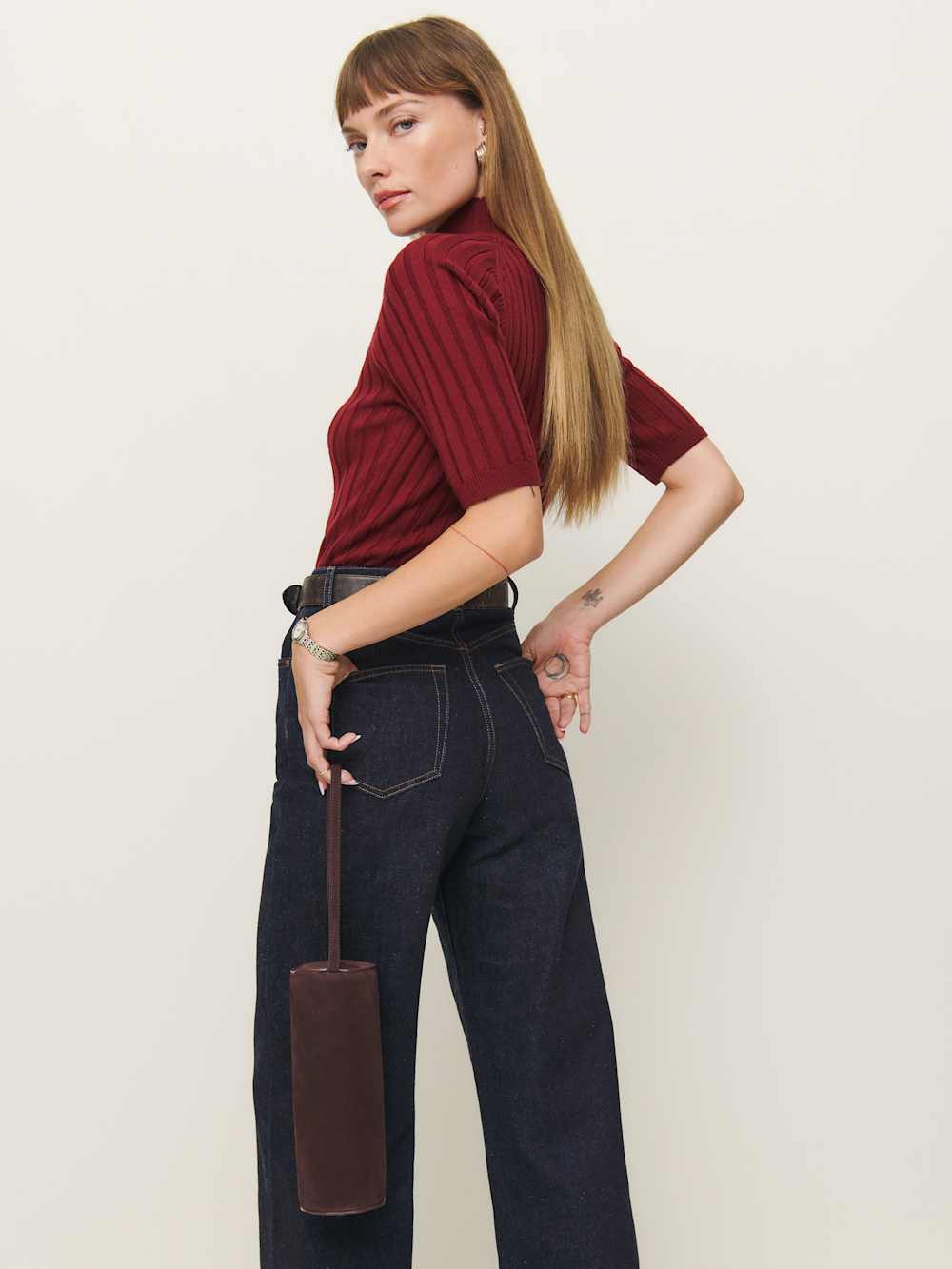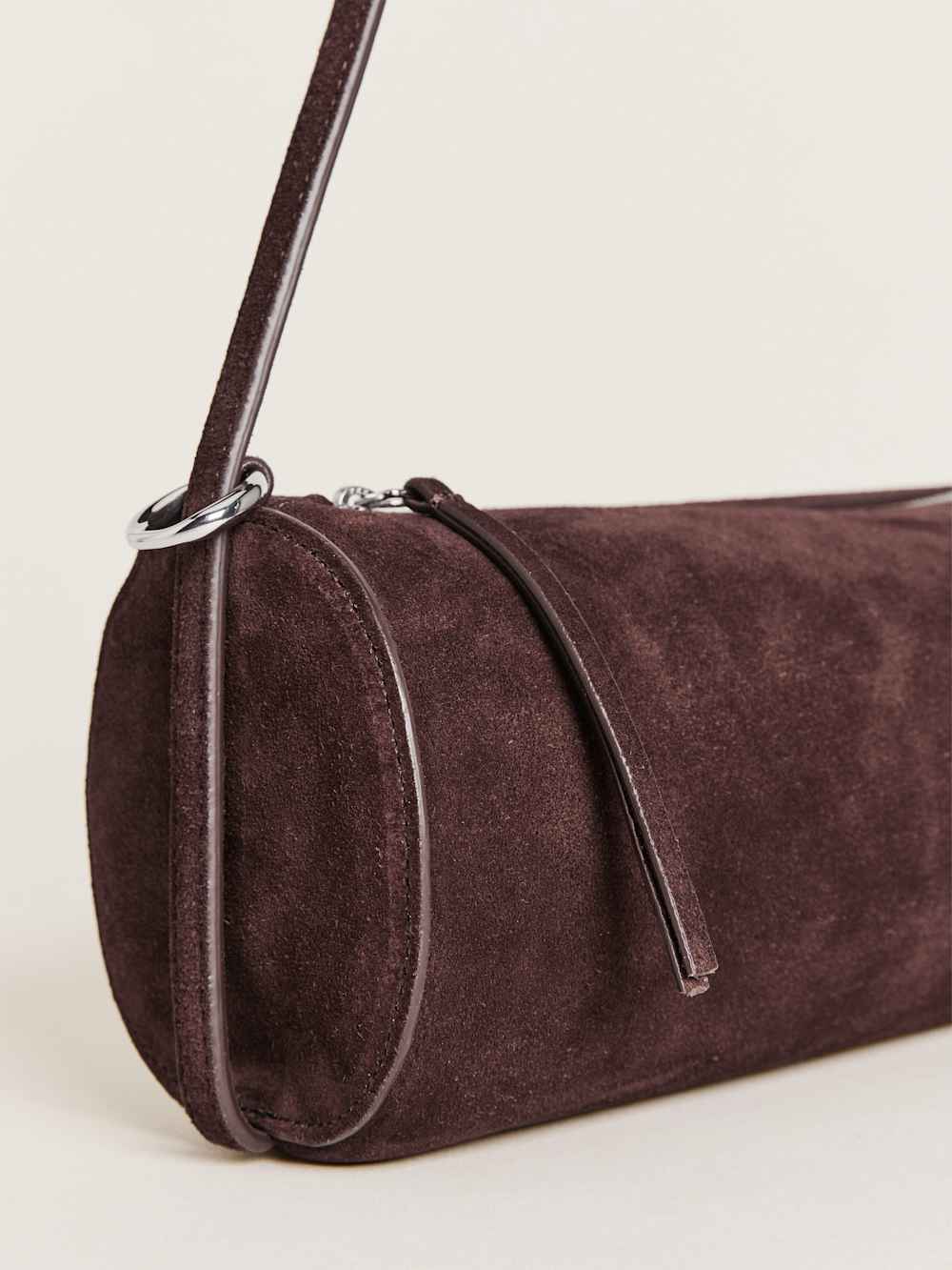 Hold me. Shop the Simona Cylinder Bag from Reformation, a cylinder shaped shoulder bag with a zip closure.