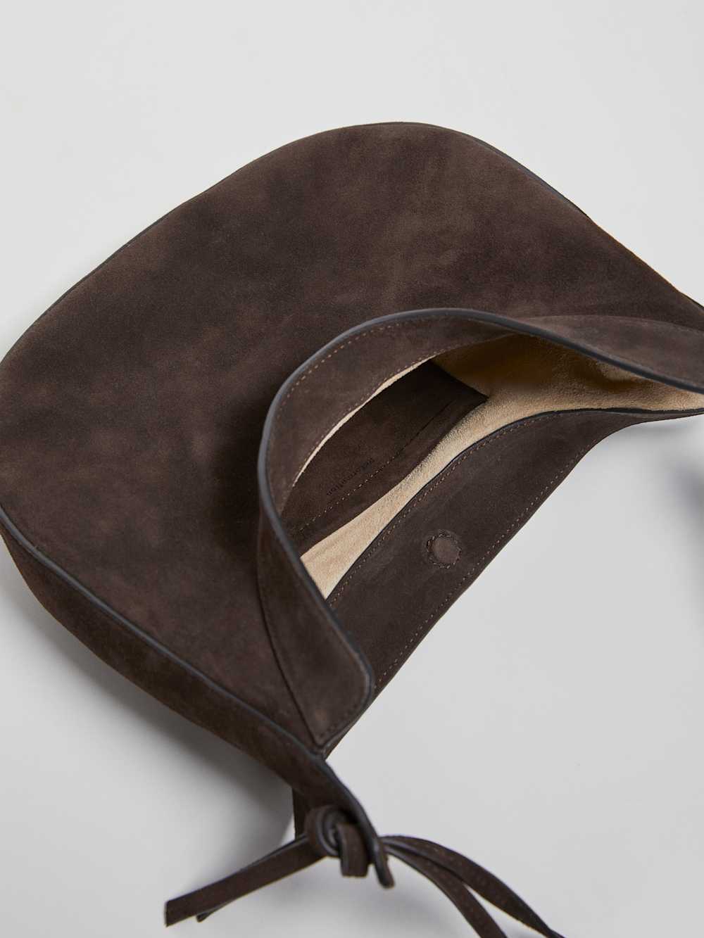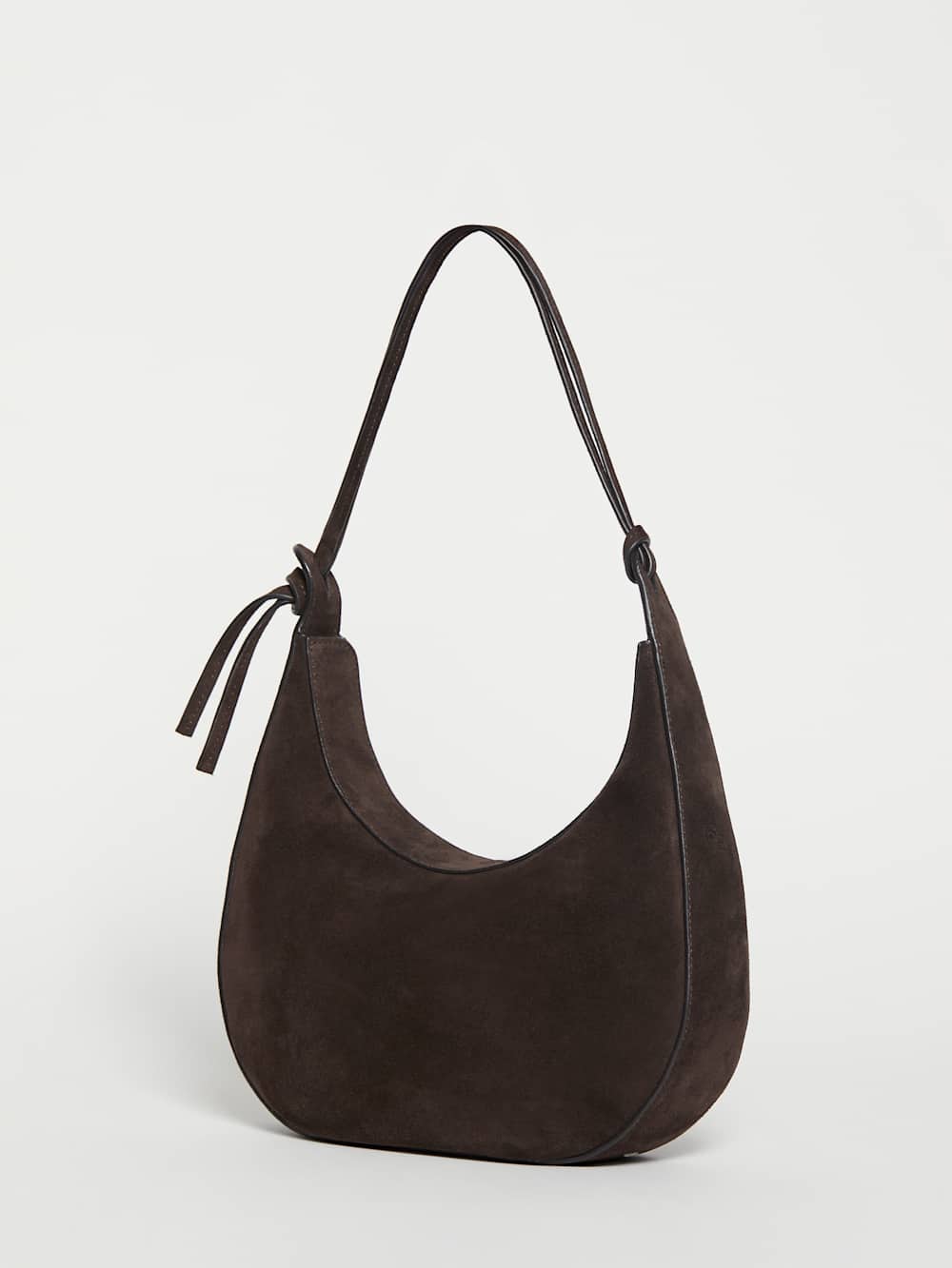 Hold me. Shop the Medium Rosetta Shoulder Bag from Reformation, a crescent shaped leather shoulder bag with a decorative tie detail and magnetic closure.