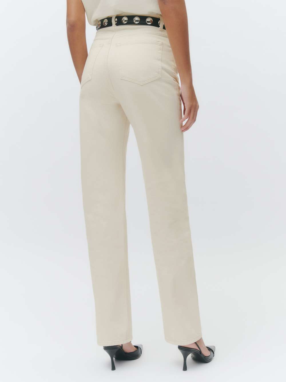 Throw on and go. Shop the Abby High Rise Straight Jeans from Reformation, fitted in the waist, hip, and butt with a relaxed straight fit in the leg.