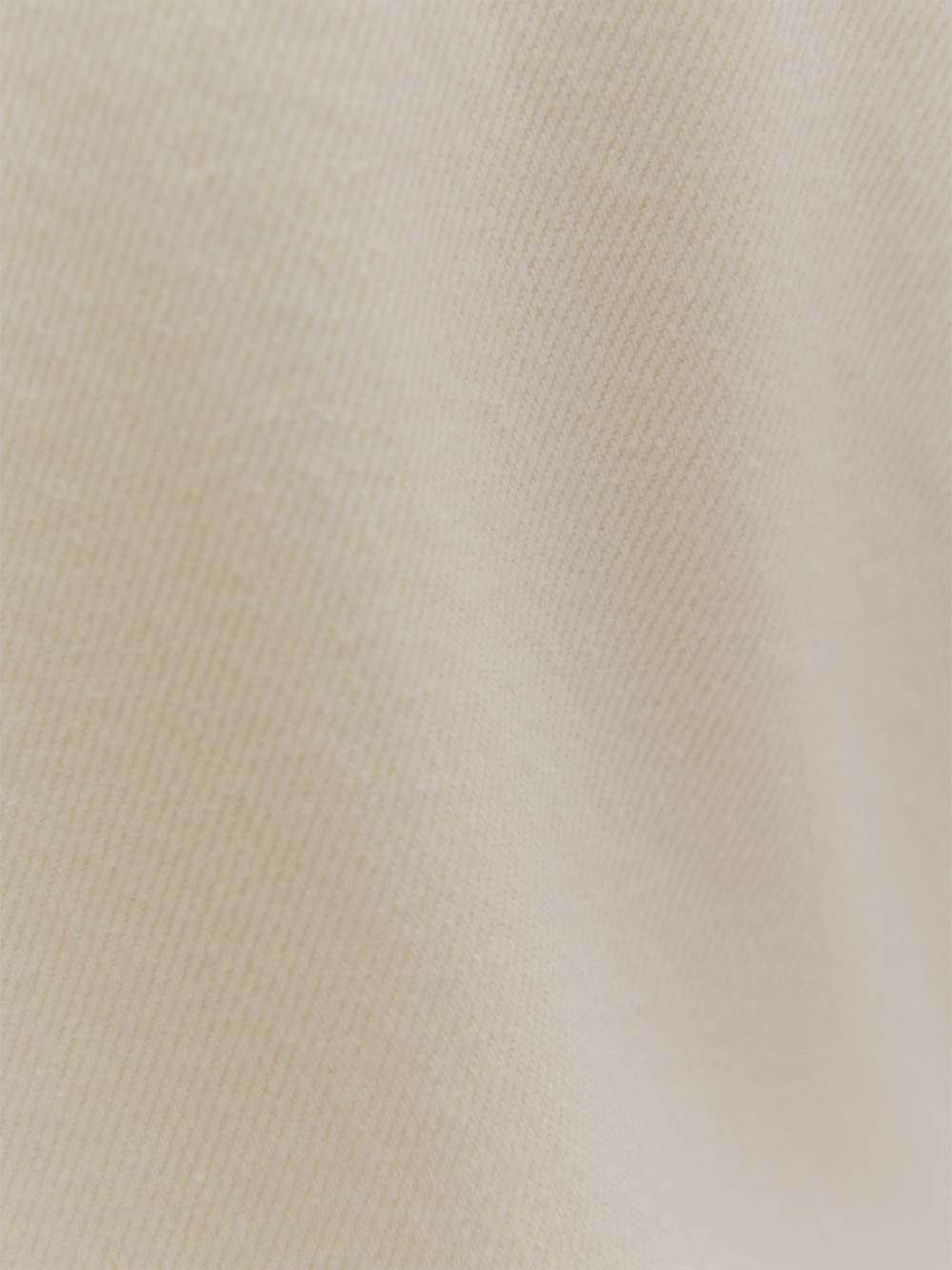 This is a non-stretch twill fabric made of 100% Organically Grown Cotton. Wash cold + line dry.