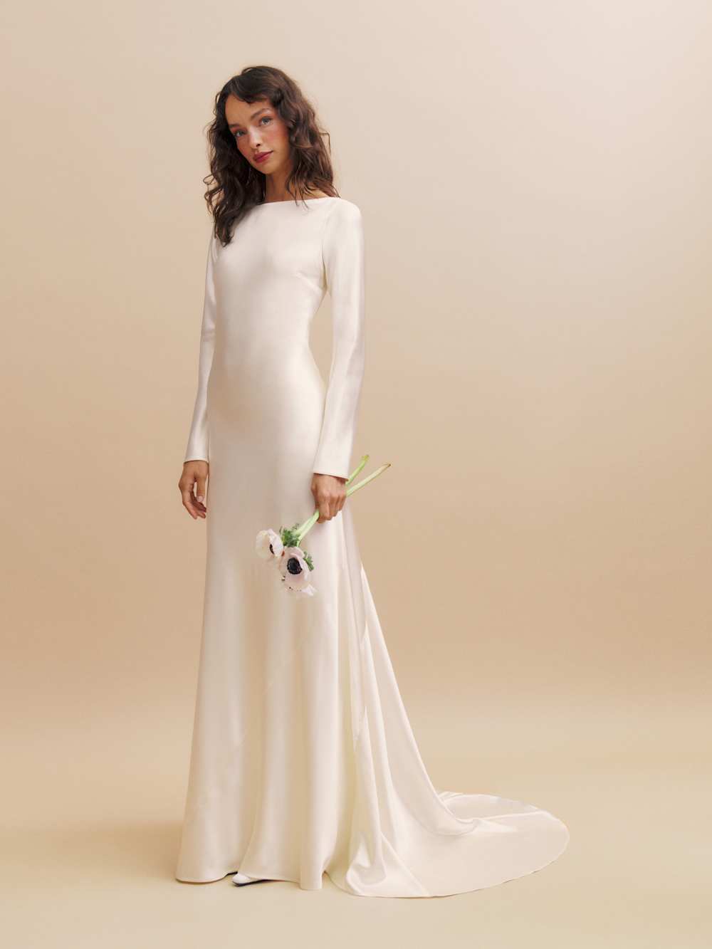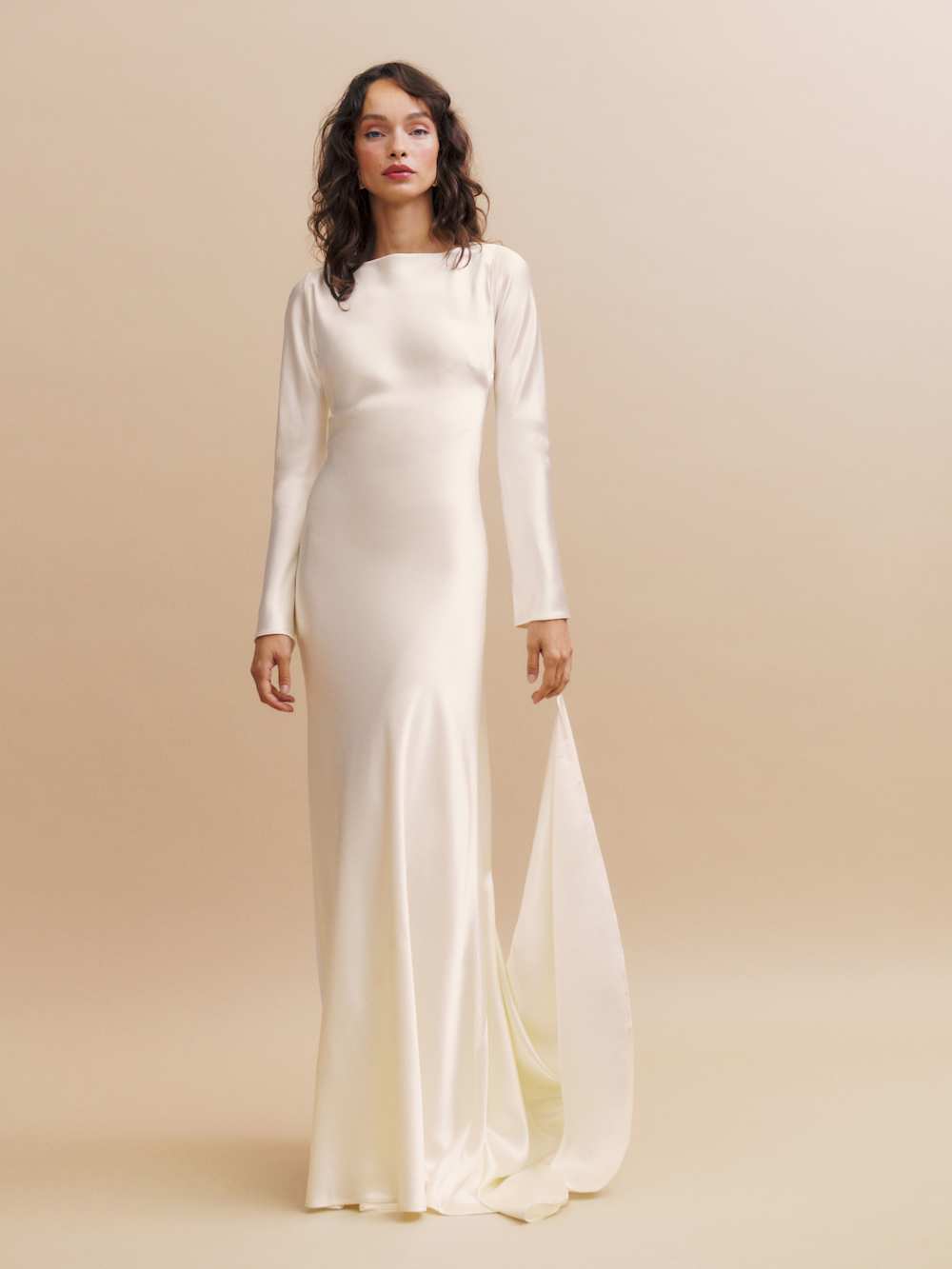 Giving in to a lifetime of monogamy? We’re here for you. Shop the Adwen Silk Dress from Reformation, a long sleeve dress with an open back and high neckline.