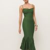 How dreamy. Shop the Aiko Dress from Reformation, a midi length dress with a sweetheart neckline, bust cup seams, ruffling at the neckline, and a pleated hem.