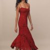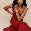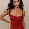 How dreamy. Shop the Aiko Dress from Reformation, a midi length dress with a sweetheart neckline, bust cup seams, ruffling at the neckline, and a pleated hem.