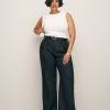 No nonsense.  Shop the Alex Linen Pant ES from Reformation, is a high rise pant with pleating at the front and a relaxed leg.