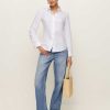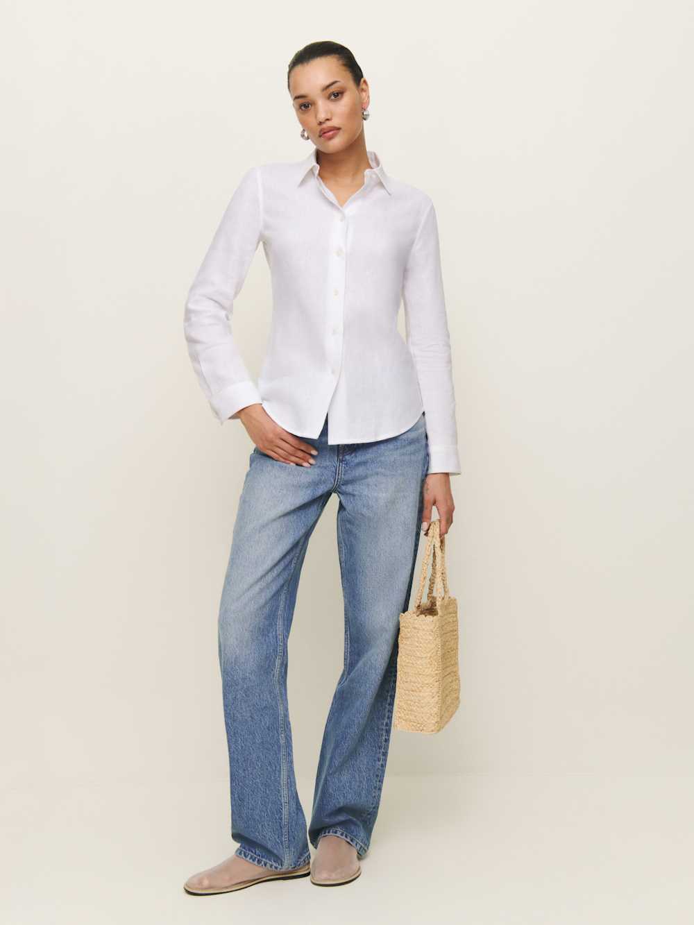 Up top. Shop the Alfie Linen Shirt from Reformation, a long-sleeved shirt with a collared neckline and button front.
