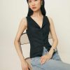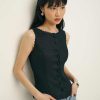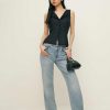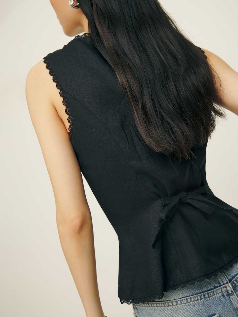What do we have here? Shop the Amela Linen Top from Reformation, a sleeveless vest top with a button front and lace detailing at the neckline.