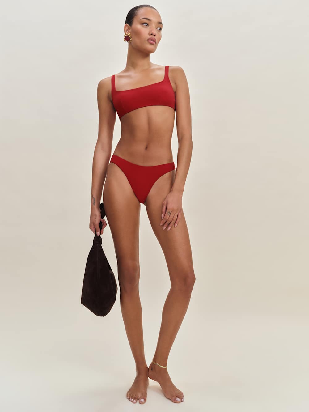 Shop the Amore Bikini Bottom from Reformation, a high leg bikini bottom with medium coverage.