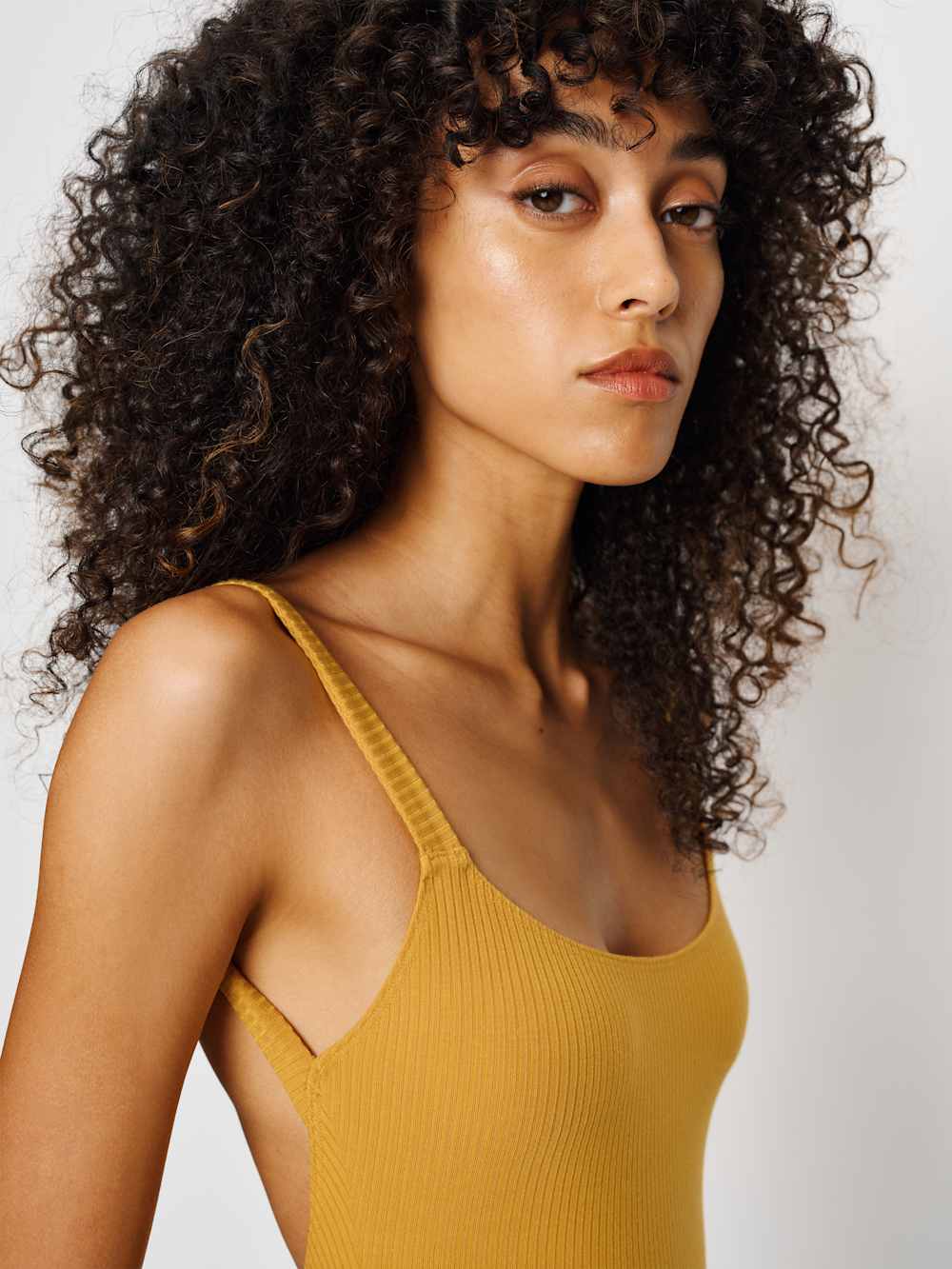 Eco Rib is a medium weight, stretchy ribbed knit with a soft handfeel – 88% TENCEL™ lyocell, 12% spandex. Wash cold + dry flat.