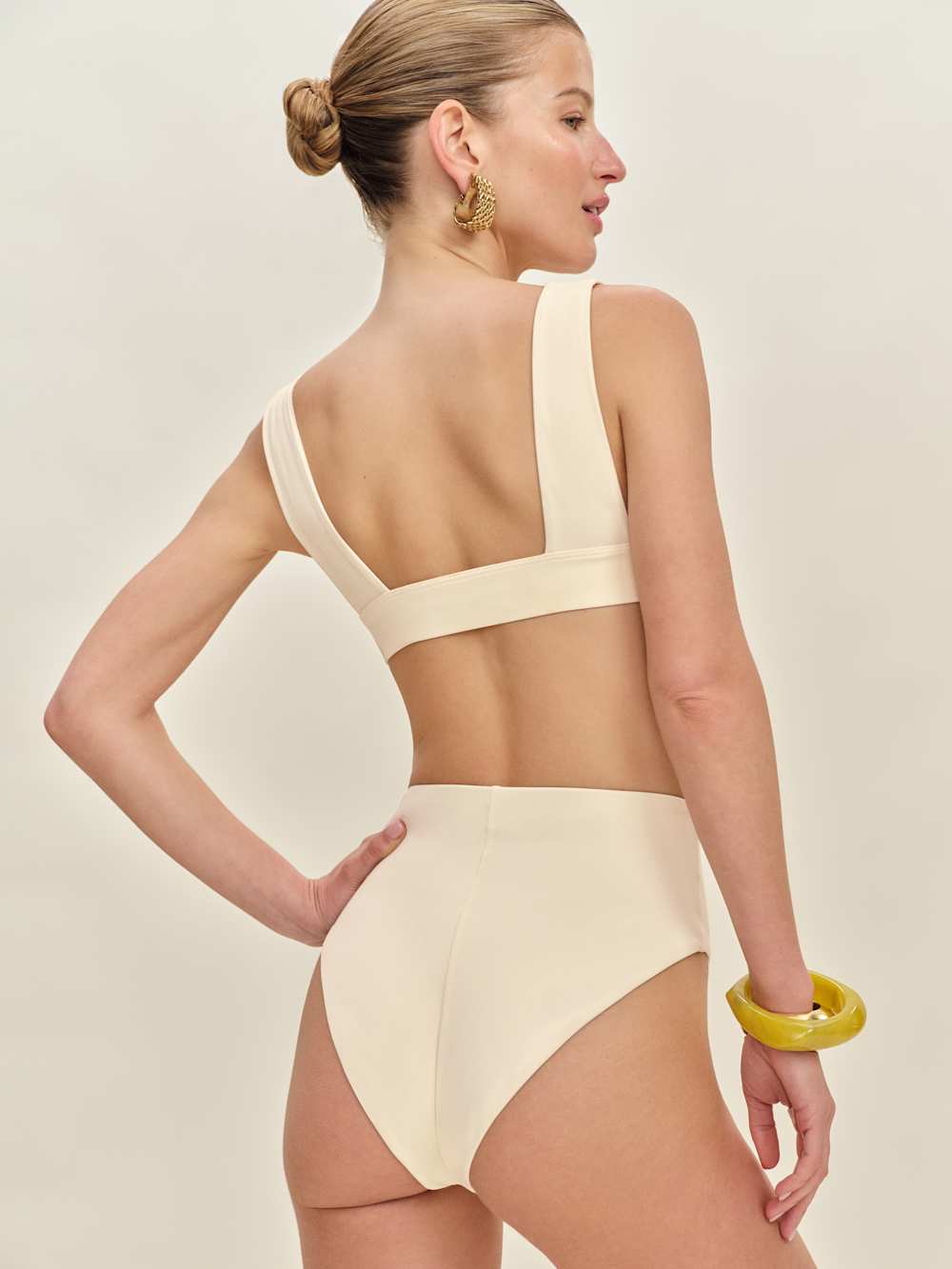 Dive in. Shop the Ana Bikini Bottom from Reformation, a high-waisted bikini bottom with medium coverage and a high cut leg.