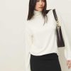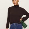 Up top. Shop the Anya Knit Top from Reformation, a long-sleeved top with a turtle neck, flared sleeves, and a relaxed fit throughout.