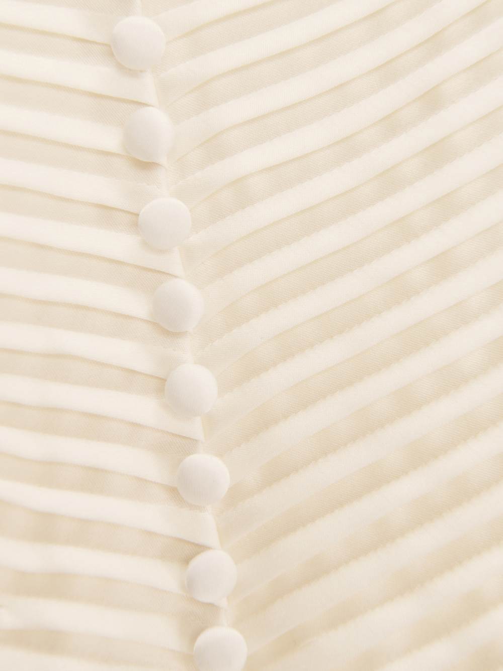 The model is wearing a size 0 and is 5’10", 25" waist, 34.5" hips, 31" bust.
