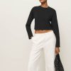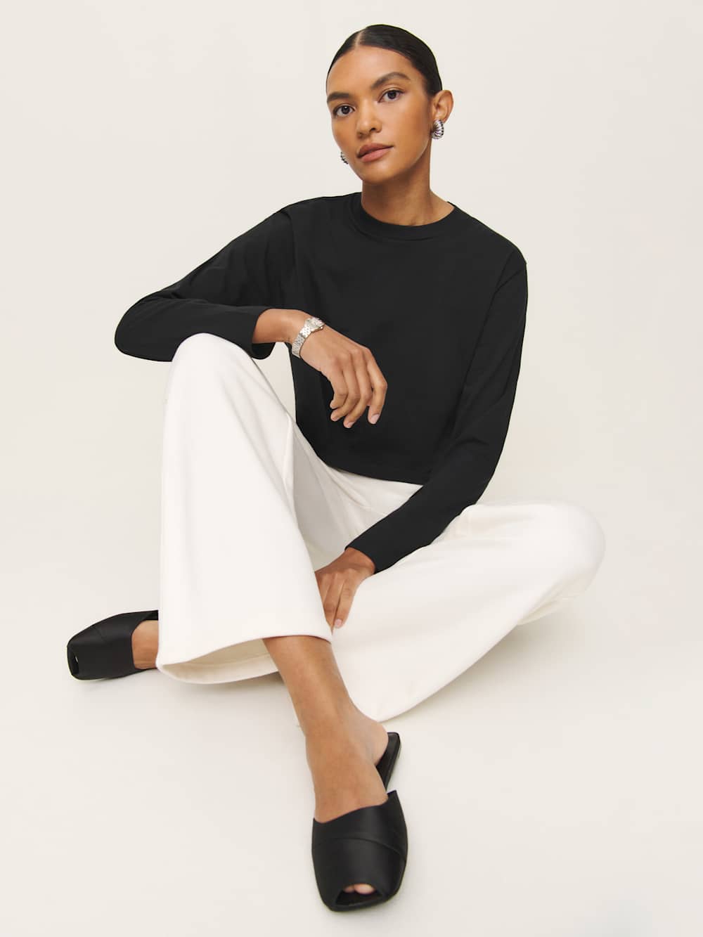 Shop the Asher Cropped Oversized Longsleeve Tee from Reformation, a cropped sweatshirt with a relaxed fit and crew neckline.
