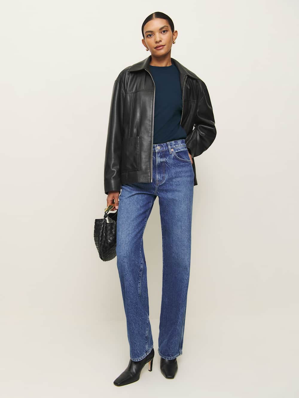 Shop the Asher Oversized Long Sleeve Tee from Reformation, a full-length sweatshirt with a relaxed fit and crew neckline.