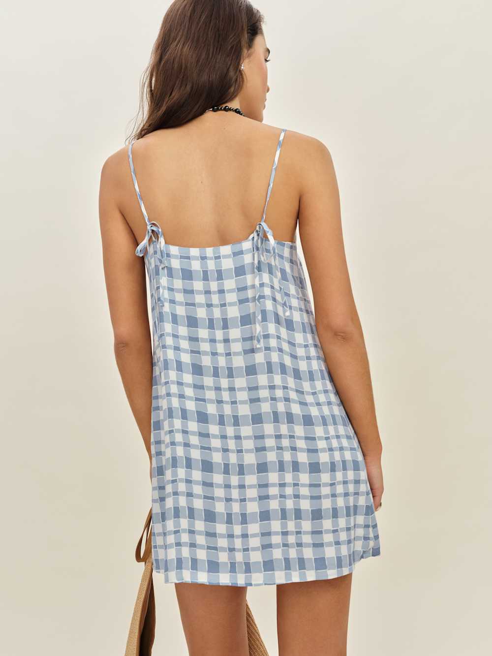 Shop the Aubree Dress from Reformation, a sleeveless mini dress with a square neckline.