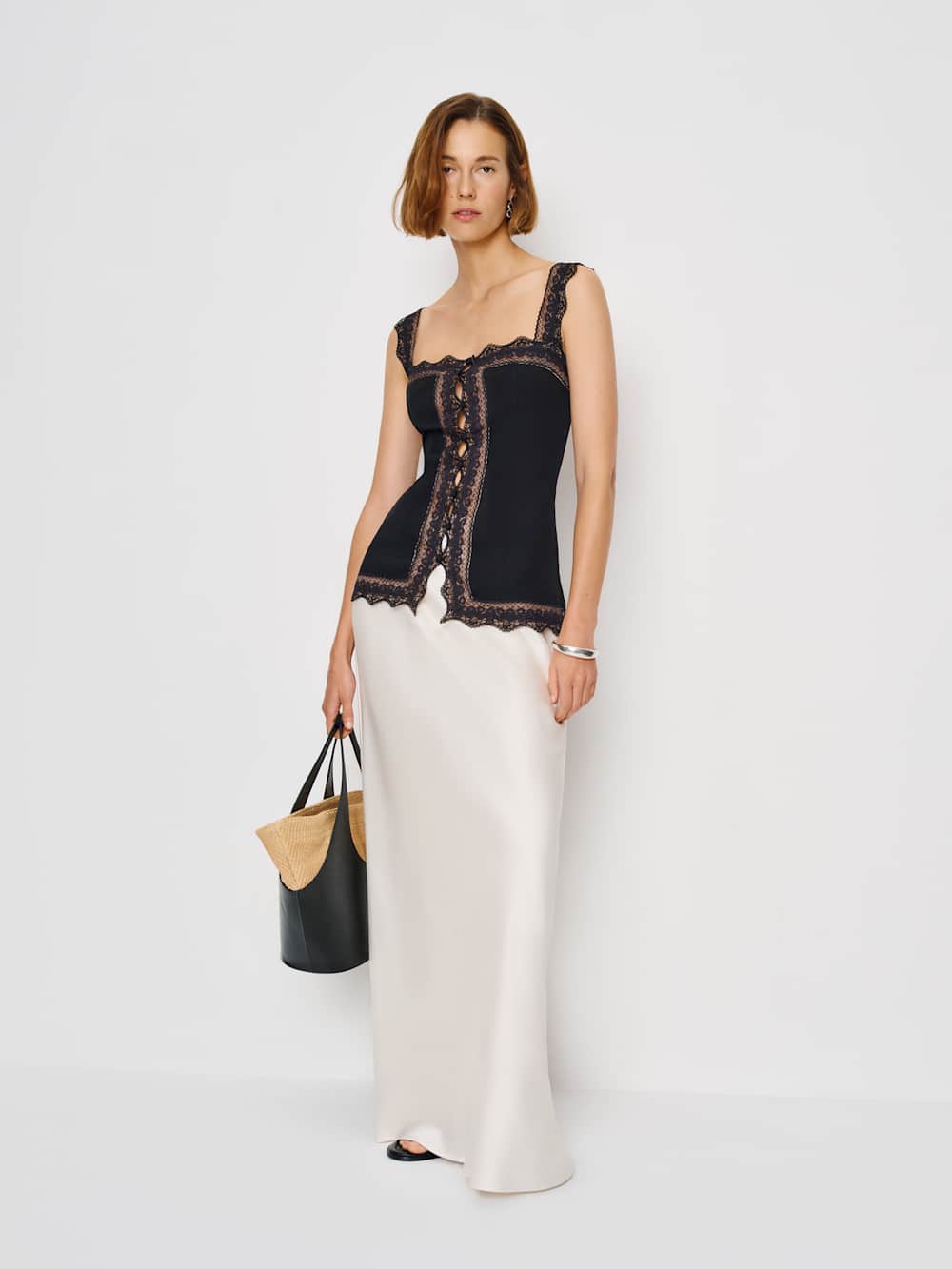 Detail oriented. Shop the Austria Top from Reformation, a sleeveless top with functional button closure in the front and an adjustable tie detail in the back.