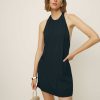 Let those legs out. Shop the Avielle Dress from Reformation, a sleeveless mini length dress with a high halter neckline and open low back.