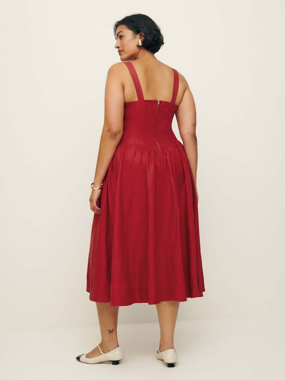 Easy breezy.  Shop the Balia Linen Dress ES from Reformation, a sleeveless maxi dress with a scoop neckline and front tie.