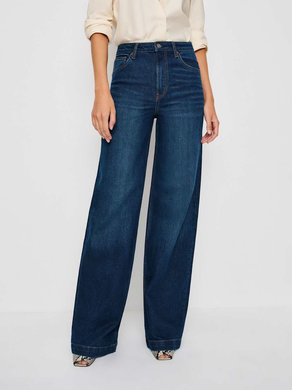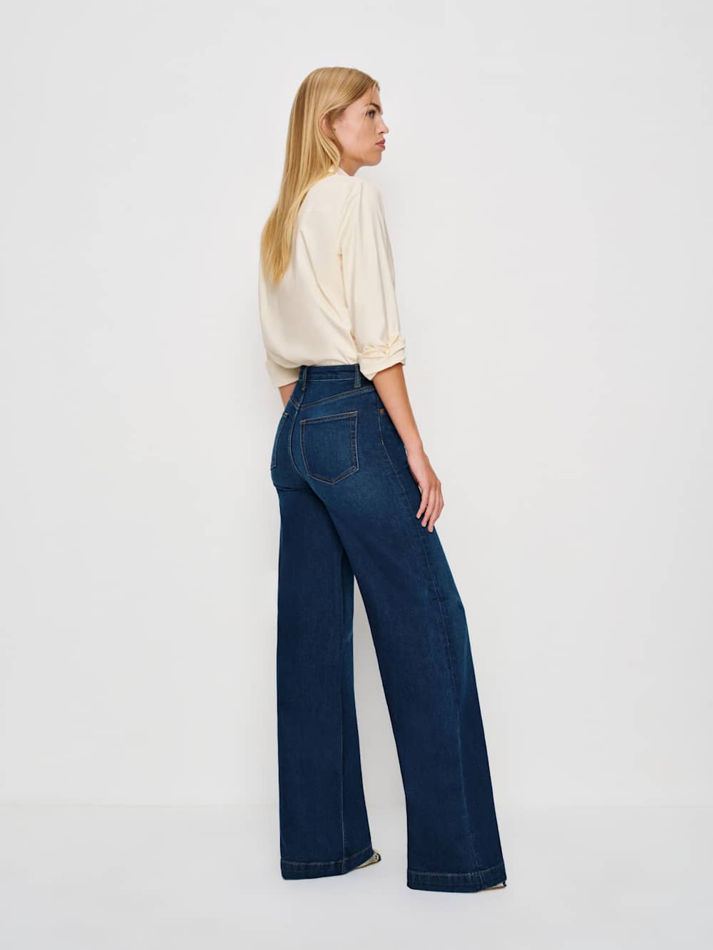 Denim – your uniform since forever. Shop the Bex Super Stretch High Rise Wide Leg Long Jeans, sustainable jeans from Reformation.