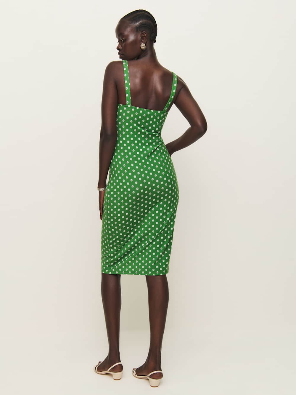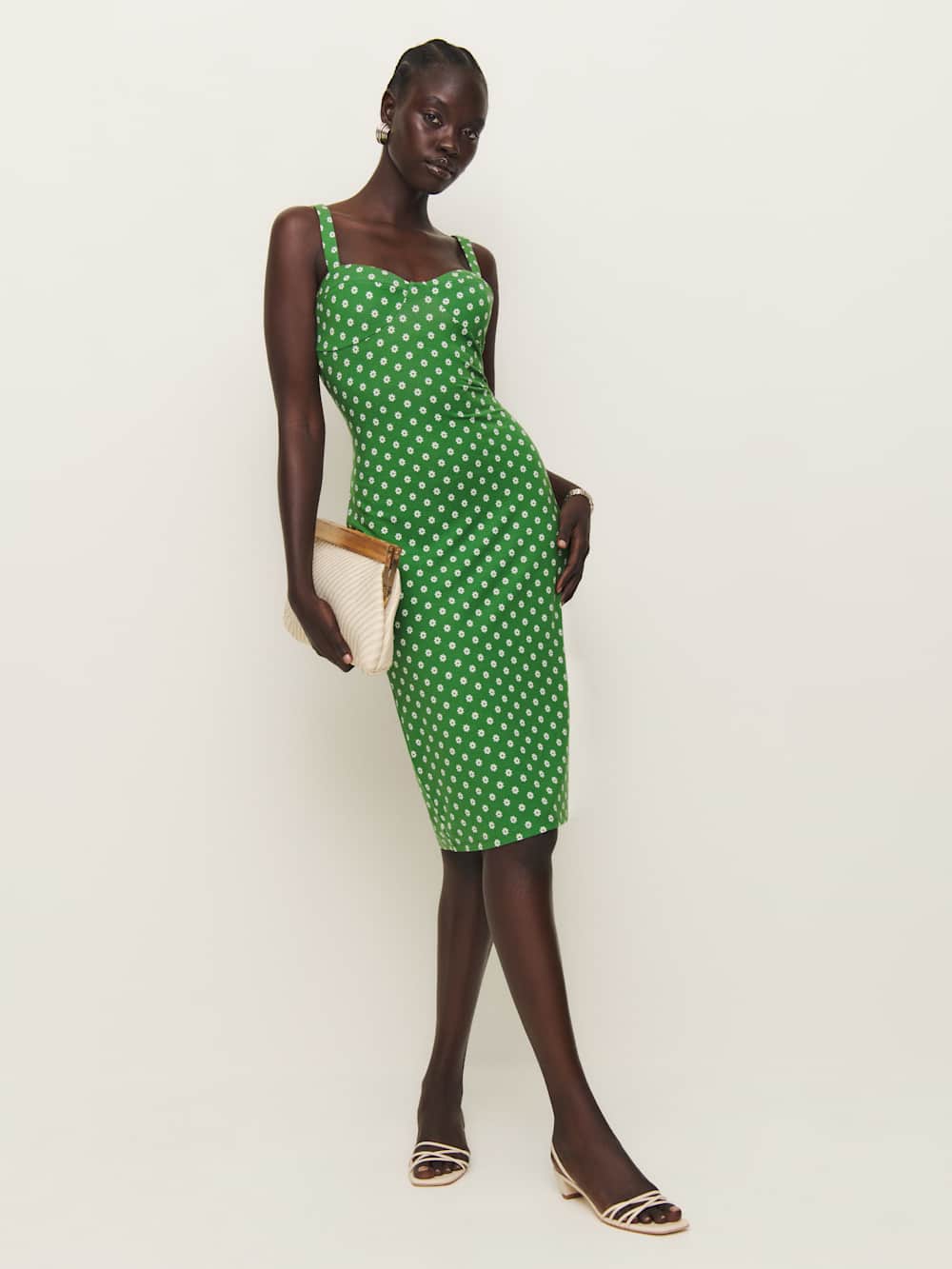 Wear the dress. Shop the Beyonca Knit Dress from Reformation, a sleeveless midi dress with a sweetheart neckline and bust cup seams.