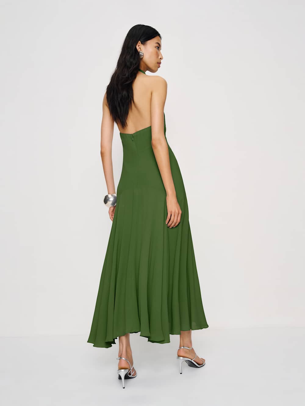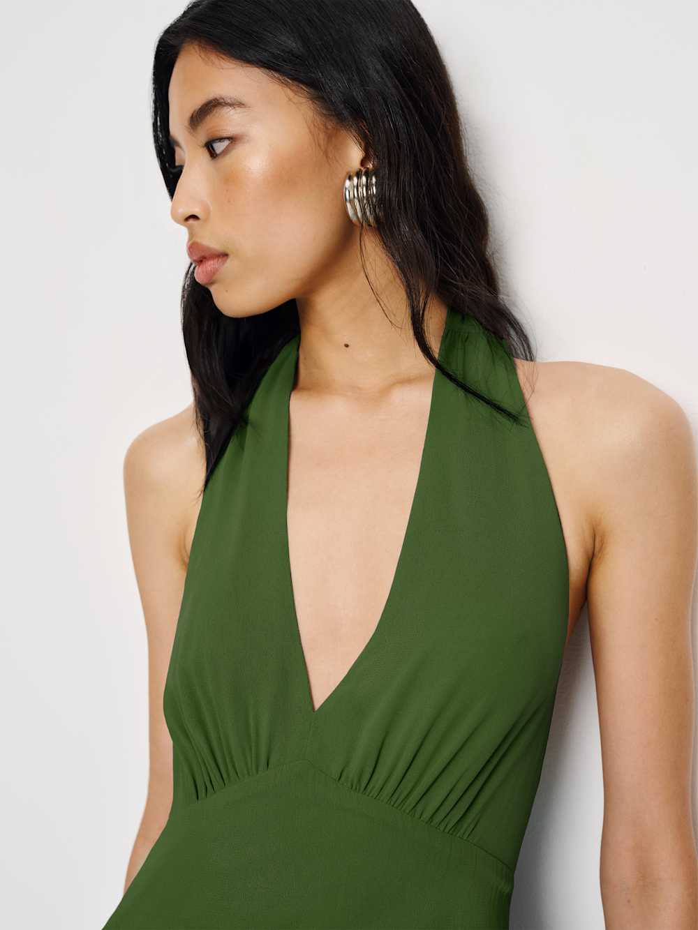 Wear the dress. Shop the Briony Dress from Reformation, a sleeveless dress with a halter neckline, drop waist, and flowy skirt.