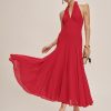 Wear the dress. Shop the Briony Dress from Reformation, a sleeveless dress with a halter neckline, drop waist, and flowy skirt.