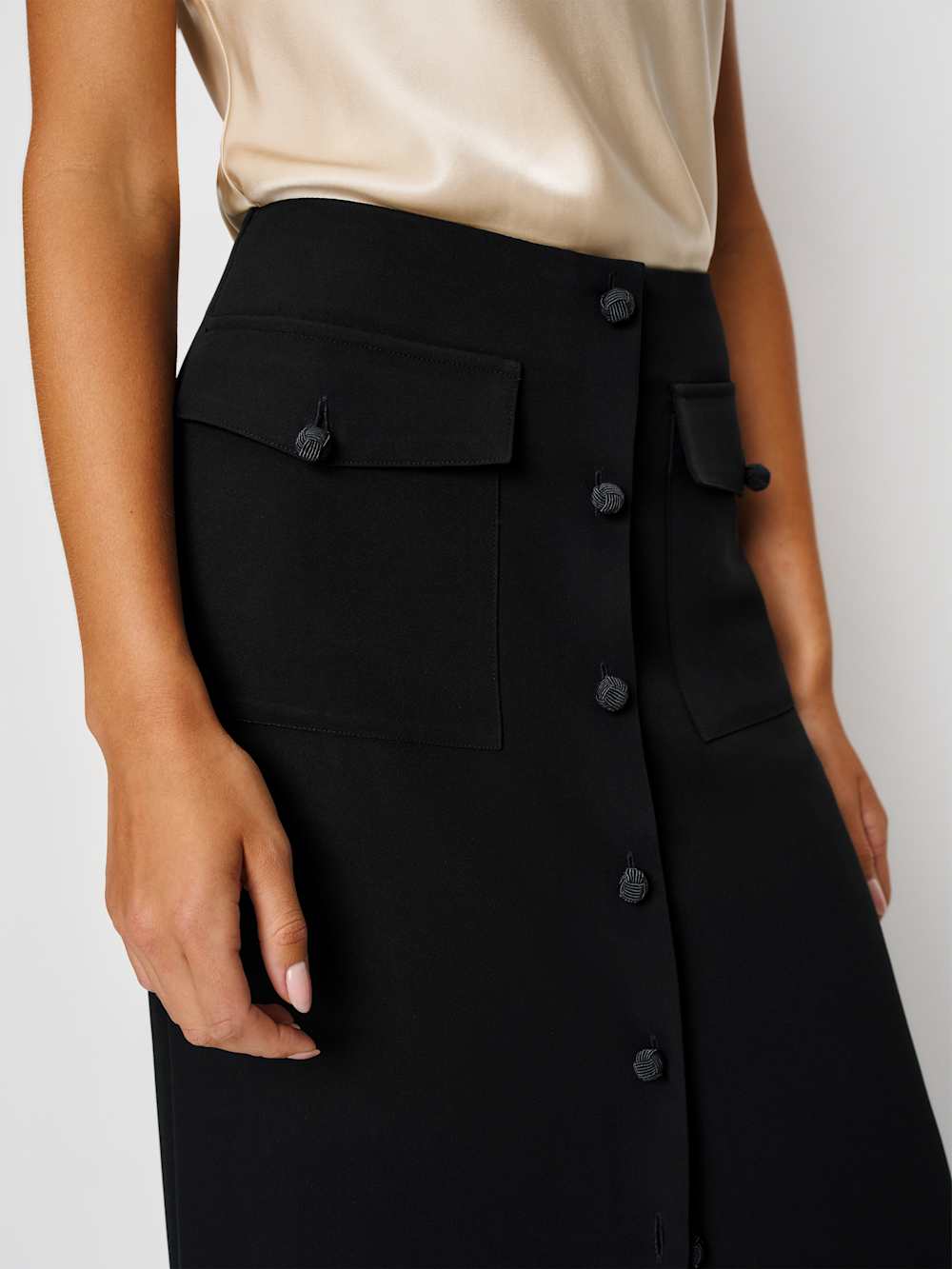 Get some compliments. Shop the Britt Skirt from Reformation, a midi skirt with a front slit, button detailing, and front patch pockets.