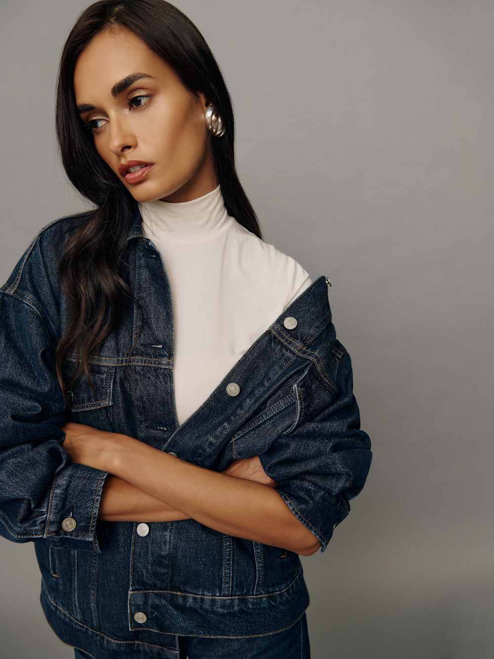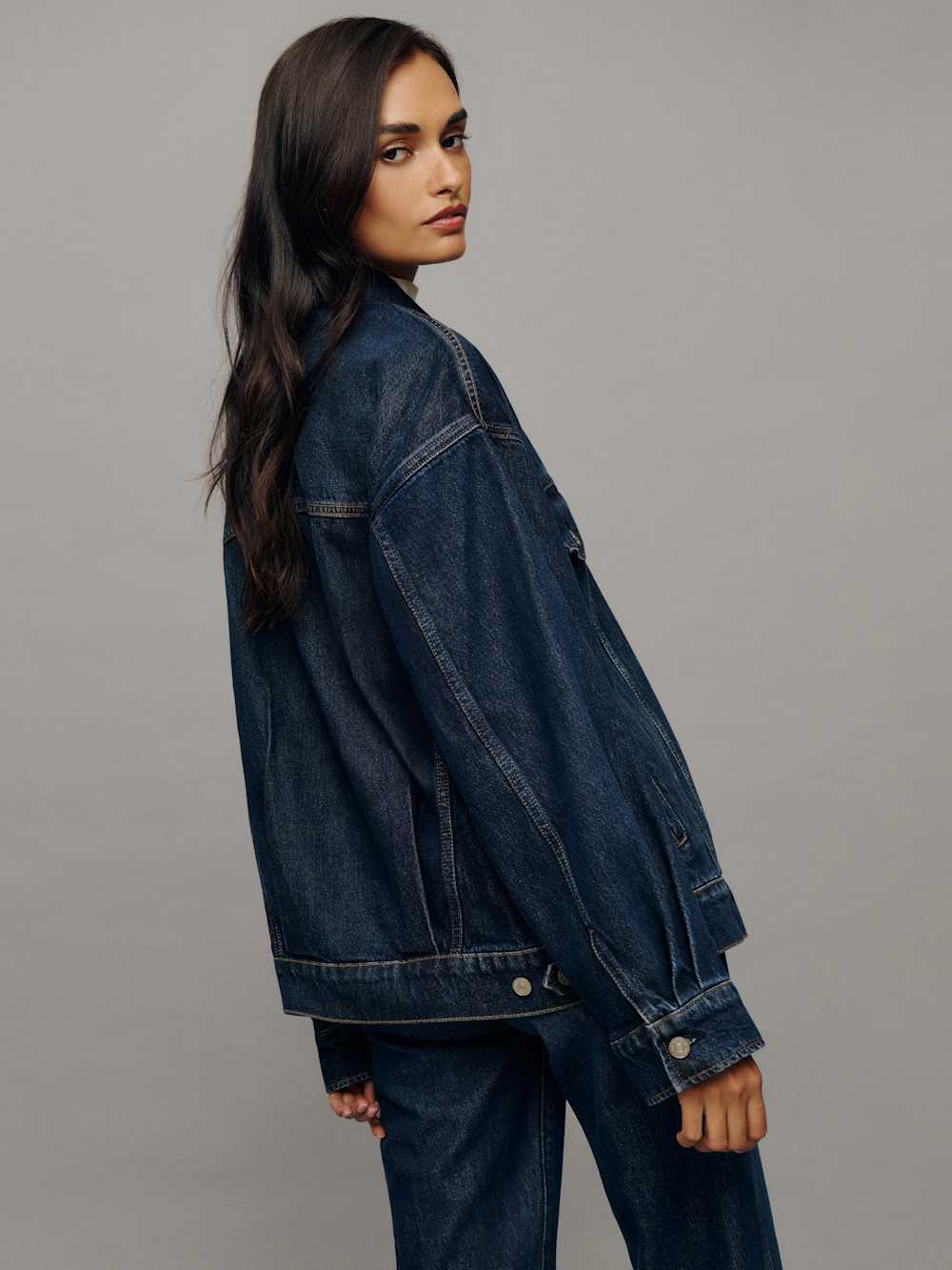 Time to add sleeves. Shop the Brooks Oversized Denim Jacket from Reformation, an oversized denim jacket with a button front and collared neckline.