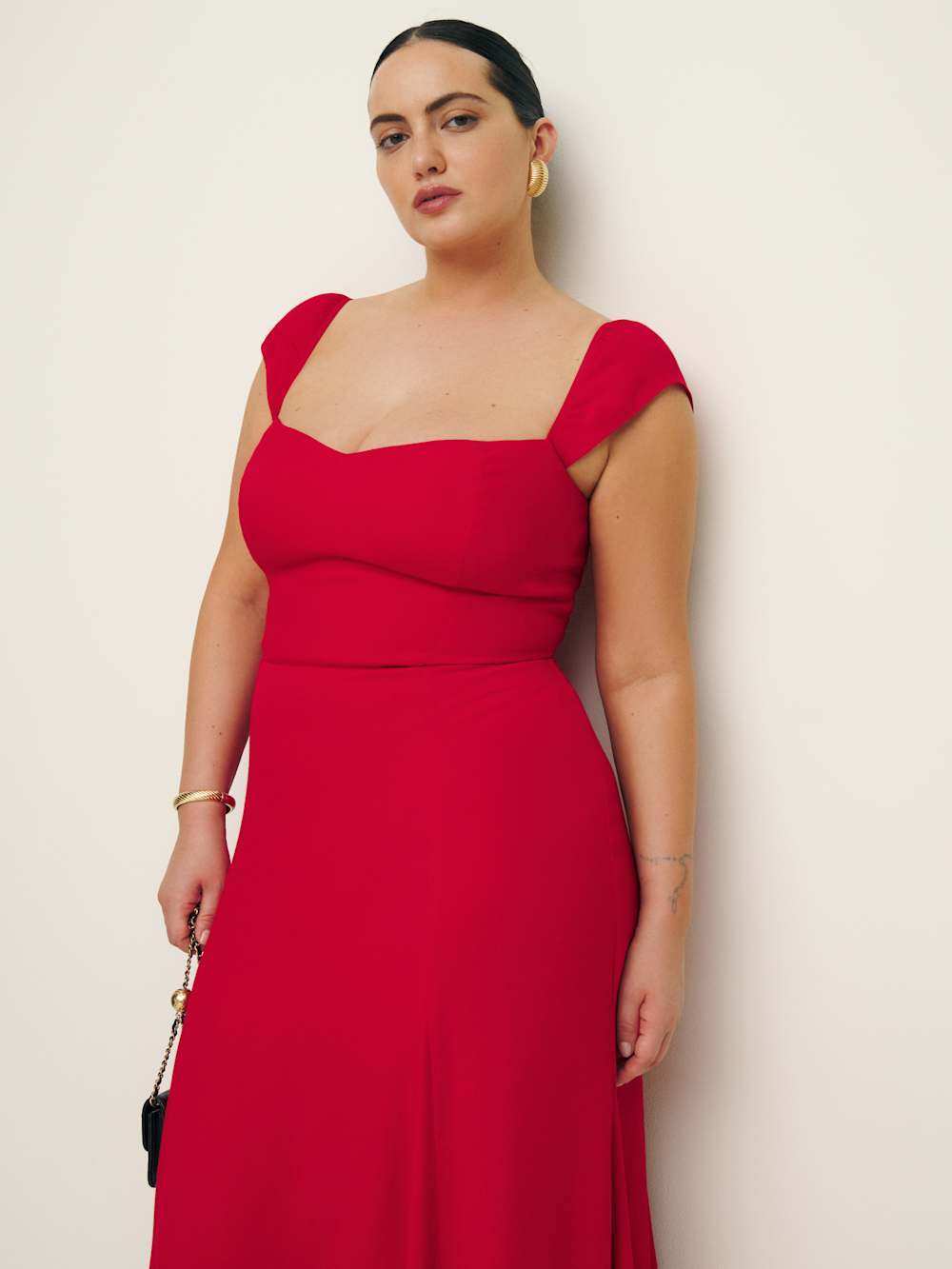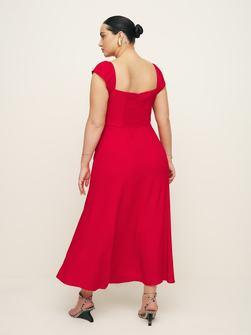 Wear the dress. Shop the Bryson Dress ES from Reformation, a midi dress with short cap sleeves, a sweetheart neckline, and back smocking.