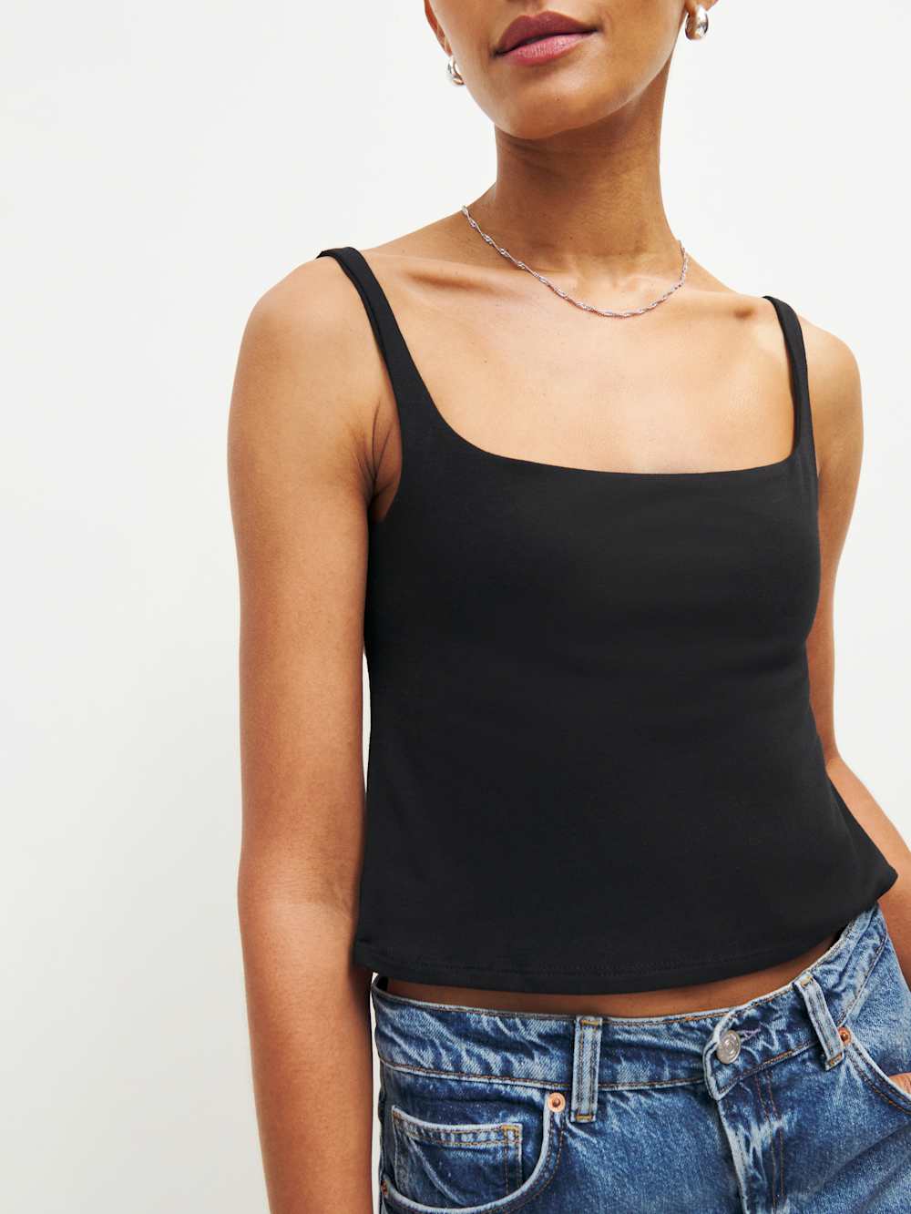 Throw on and go. Shop the Cairo Knit Top from Reformation, a sleeveless, relaxed fitting top with a straight neck.