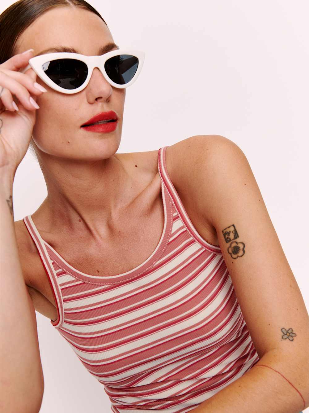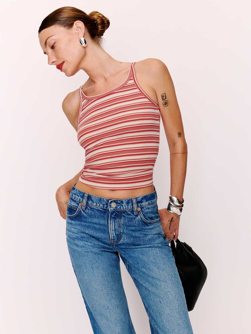 You make it look easy. Shop the Calie Top from Reformation, a fitted tank top with a scoop neckline. It’s soft and stretchy for an extra comfortable feel.