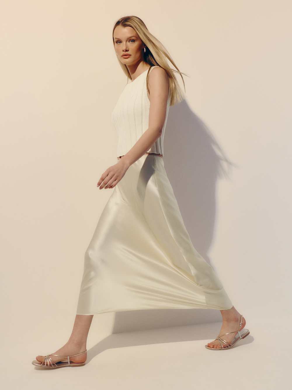 Minimal effort. Shop the Callie Cotton Ribbed Sweater Tank from Reformation, a sleeveless, ribbed sweater tank with a high neckline.