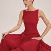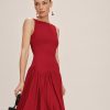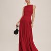 Wear the dress. Shop the Camella Dress from Reformation, a sleeveless full-length dress with a high boat neckline, drop waist, and pleated skirt.