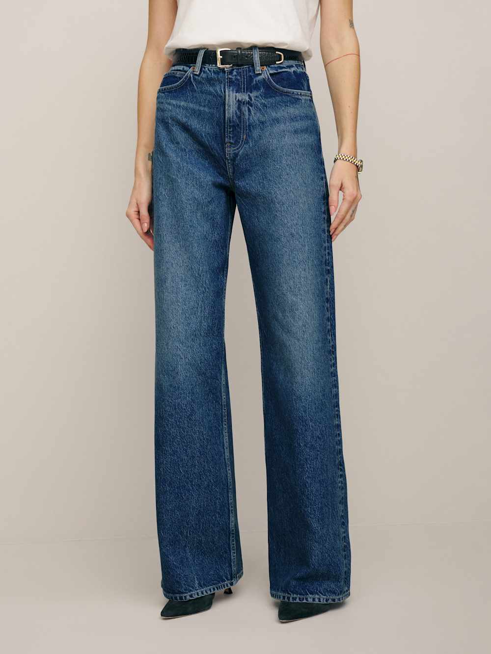 Tell your legs. The Cary is a high rise, loose fitting wide leg jean with a full length inseam and zip fly closure.