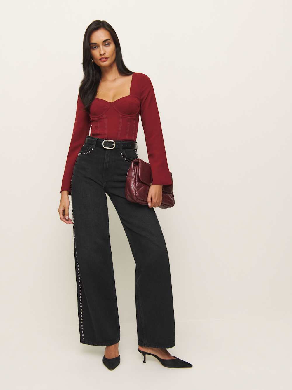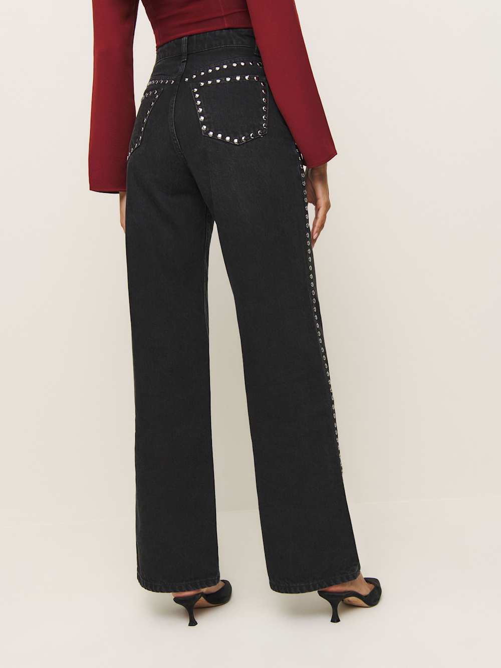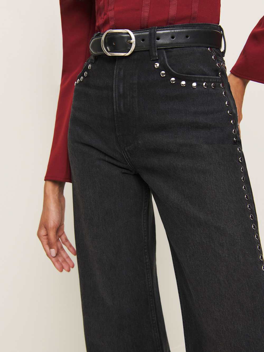 Tell your legs. The Cary is a high rise, loose fitting wide leg jean with a full length inseam and zip fly closure.