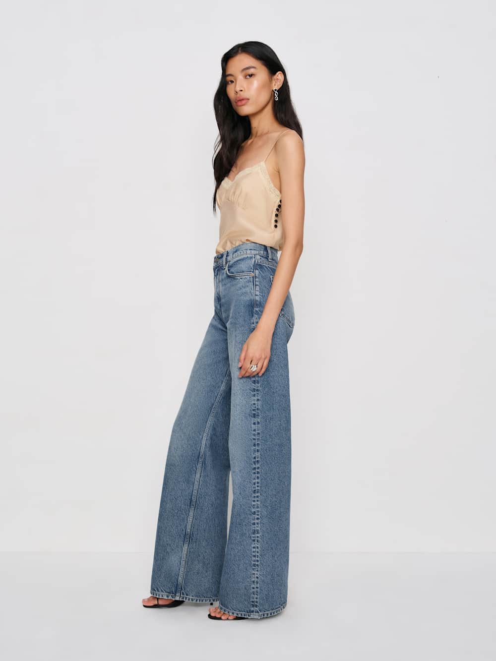 Denim – your uniform since forever. Shop the Cary High Rise Slouchy Wide Leg Short Jeans, sustainable jeans from Reformation.