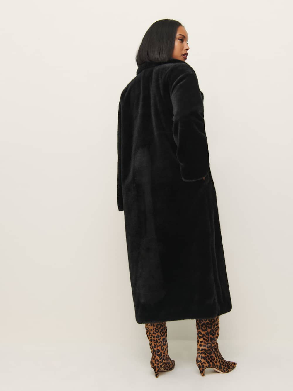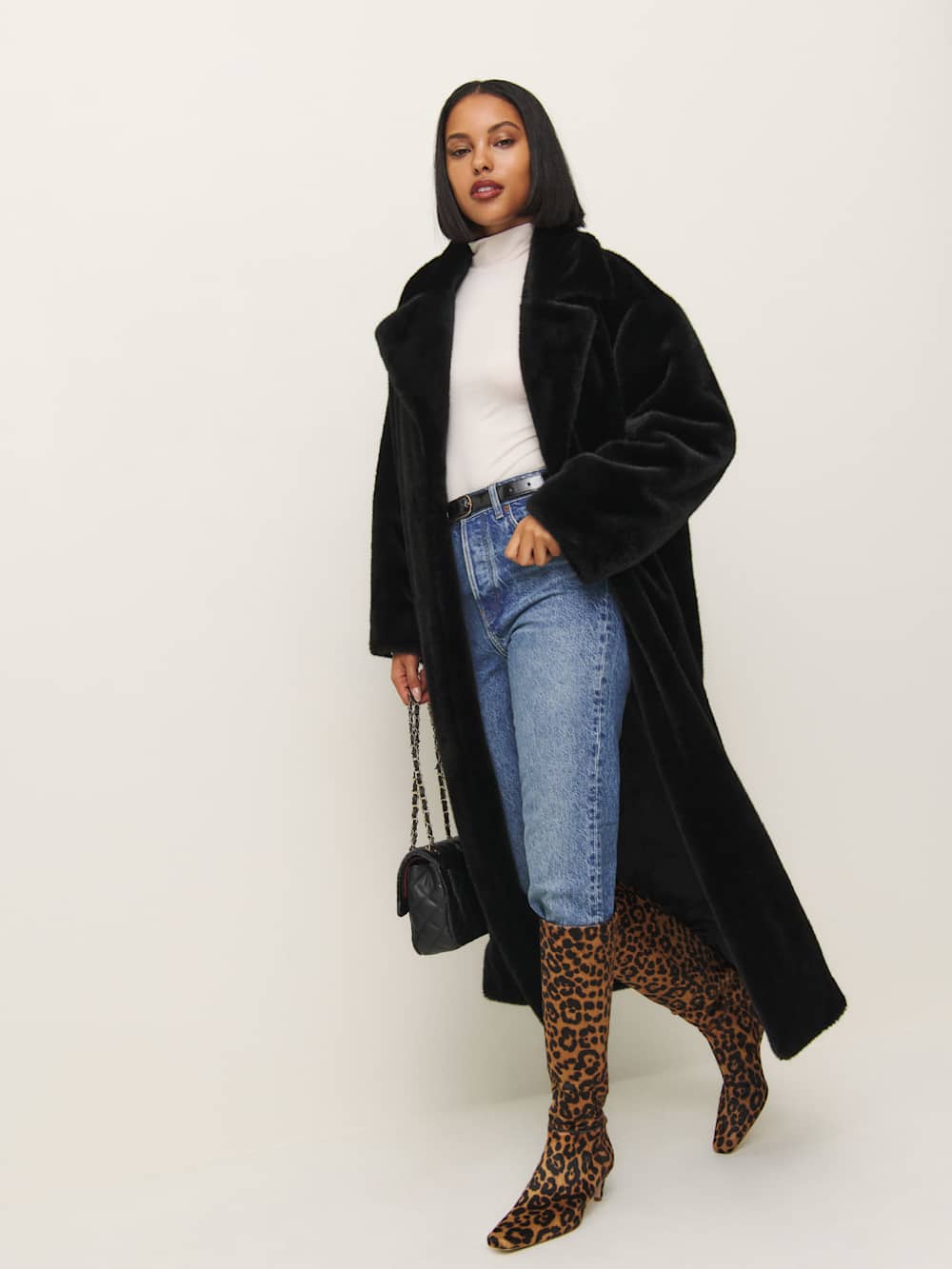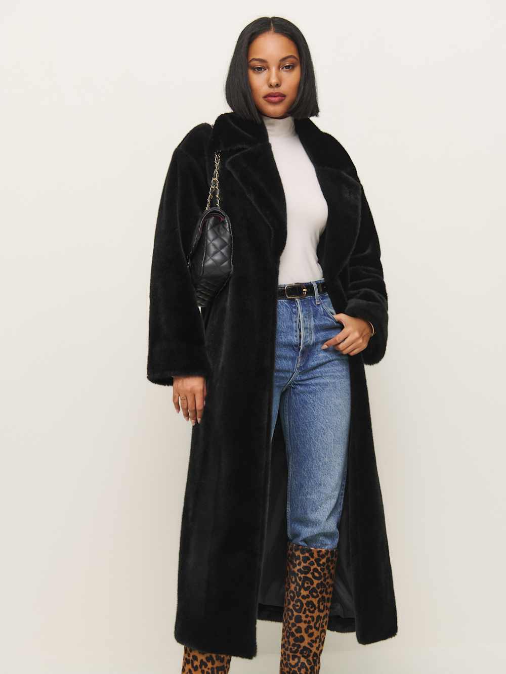 Layer up. Shop the Chloe Faux Fur Oversized Coat from Reformation, a faux fur, oversized coat with a collared neckline.