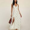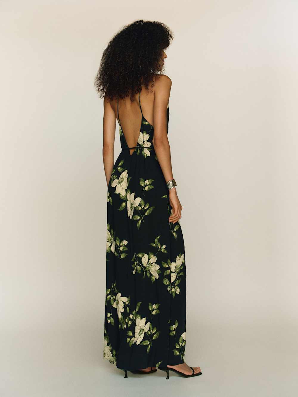 Wear the dress. Shop the Citronella Dress from Reformation, a sleeveless maxi dress with a V-neckline, open back, side slit, and an adjustable tie at the waist.