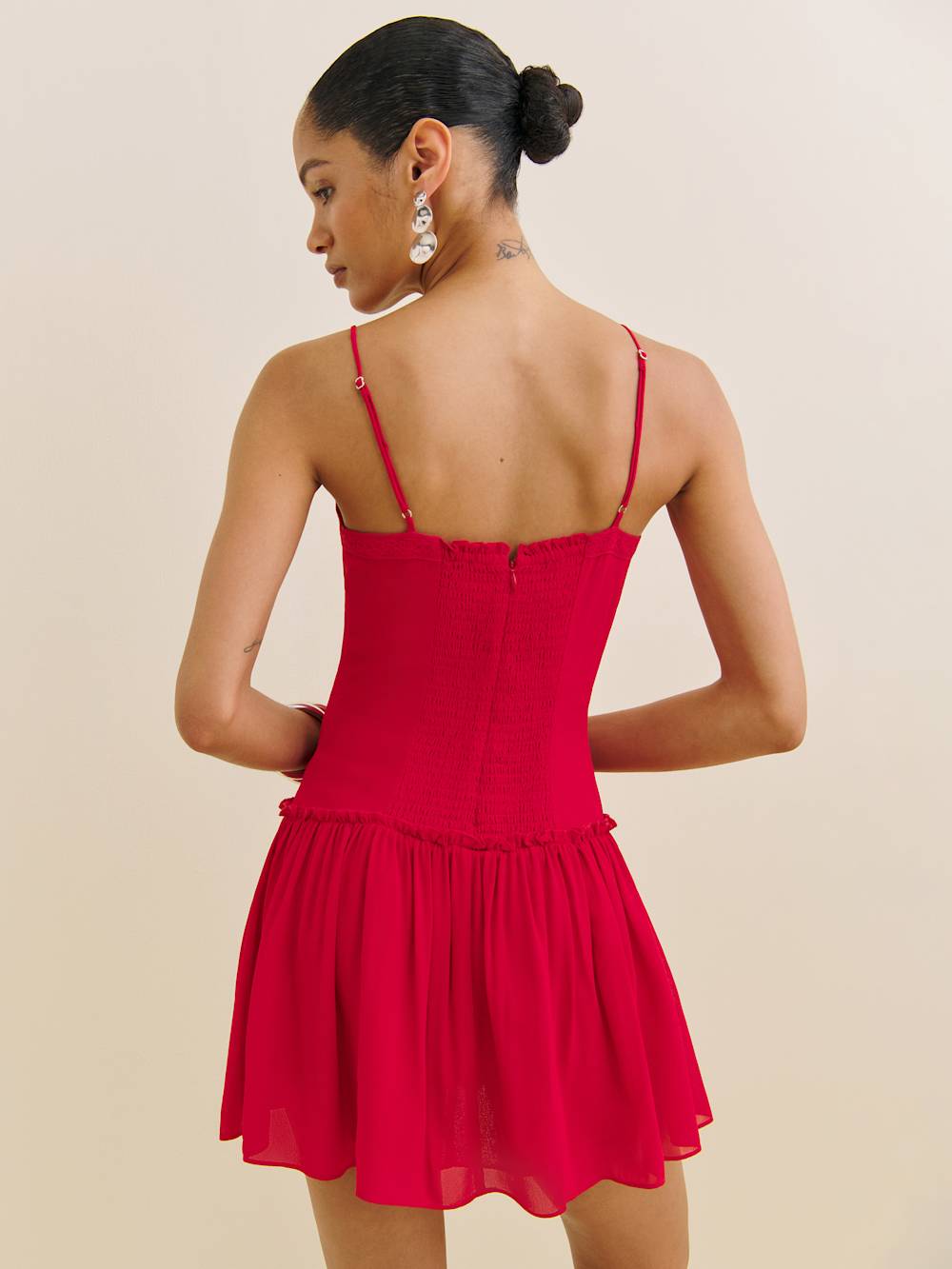 Wear the dress. Shop the Citrus Dress from Reformation, a sleeveless mini dress with a v-neckline, drop waist, and button front.