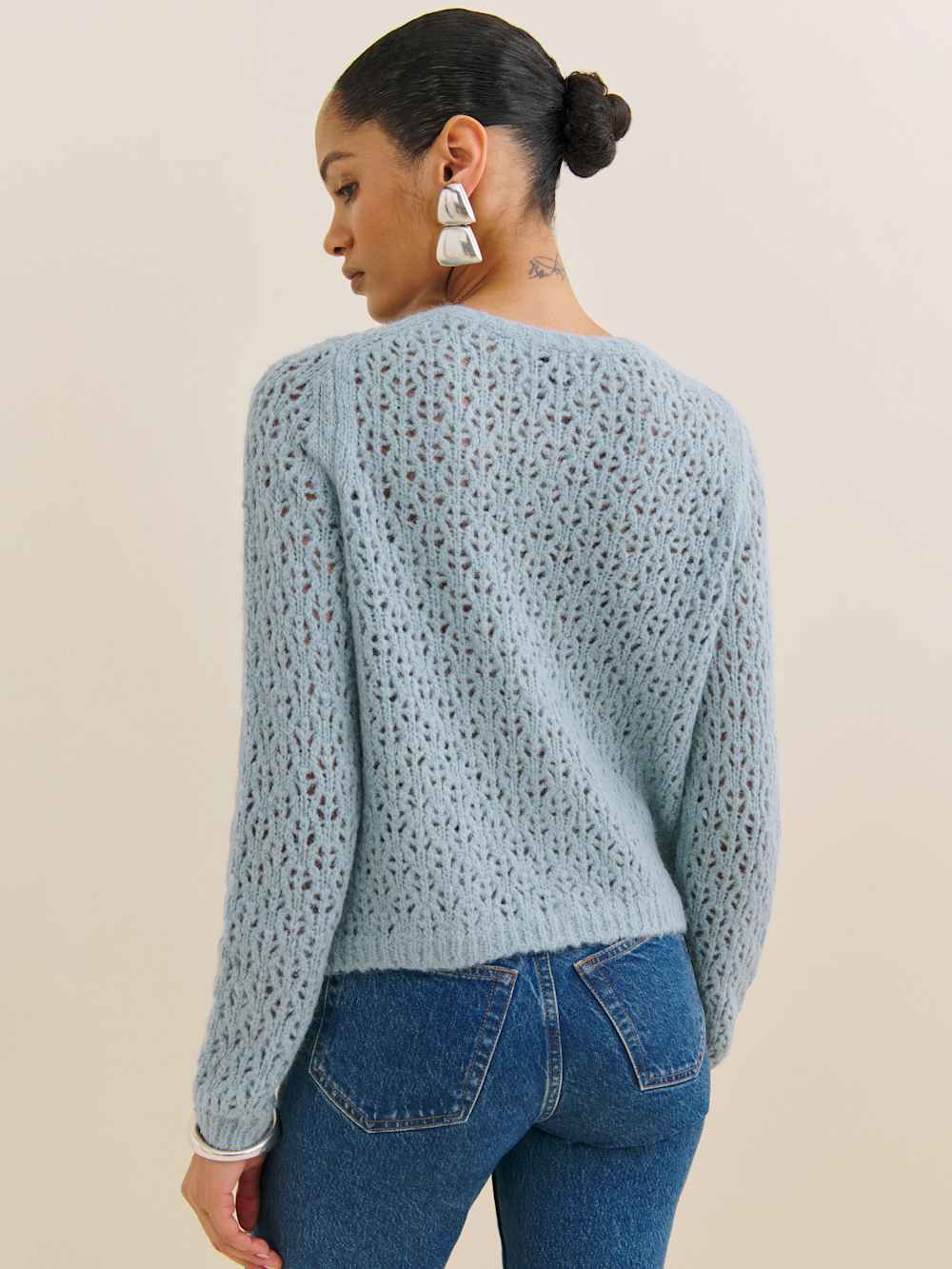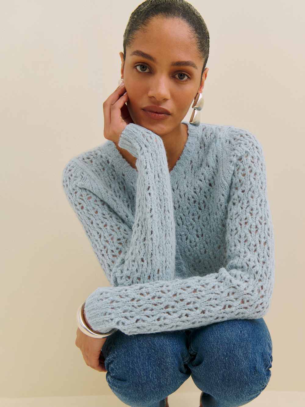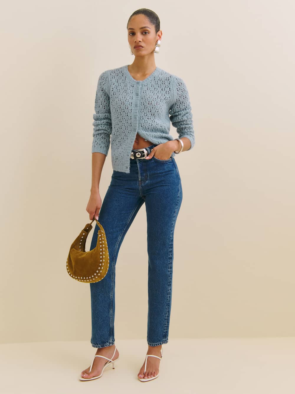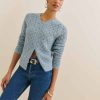 It’s getting cold-ish. Shop the Clara Crew Cardigan from Reformation, a relaxed fit, long sleeve, crew neck cardigan. It features a functional button front.