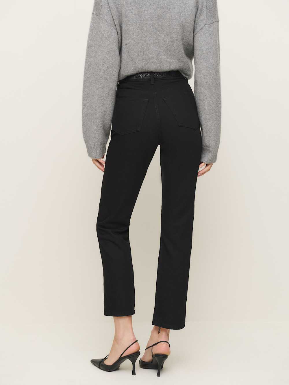 Smart ass jeans. This is a high rise, rigid jean with a cropped straight leg and a finished hem. The Cynthia Crop High Relaxed is fitted throughout the hip and