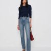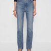 Smart ass jeans. This is a high rise, rigid jean with a cropped straight leg and a finished hem. The Cynthia Crop High Relaxed is fitted throughout the hip and