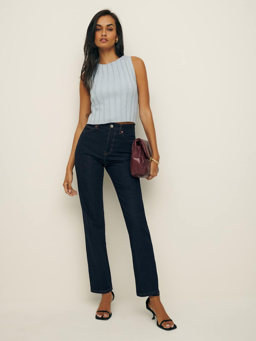 Get your butt into something more sustainable. Shop the Cynthia jean, a high rise straight jean made of rigid denim.