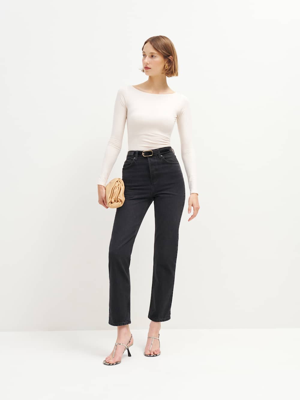 Get your butt into something more sustainable. Shop the Cynthia jean, a high rise straight jean made of rigid denim.