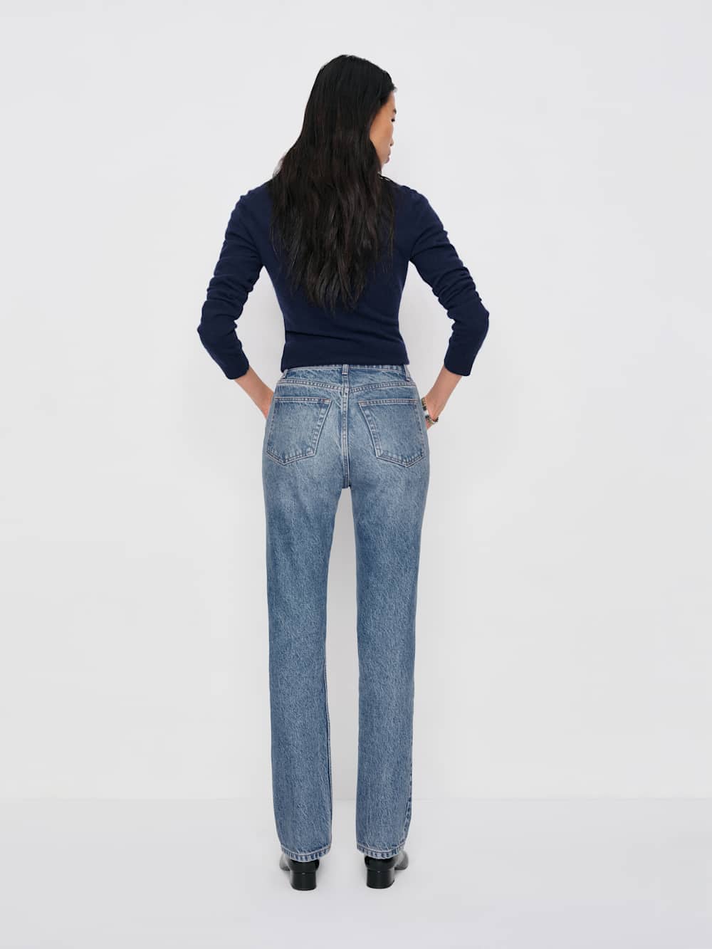 Nice legs. Shop the Cynthia High Rise Straight Long Jean from Reformation, sustainable high rise rigid jeans.