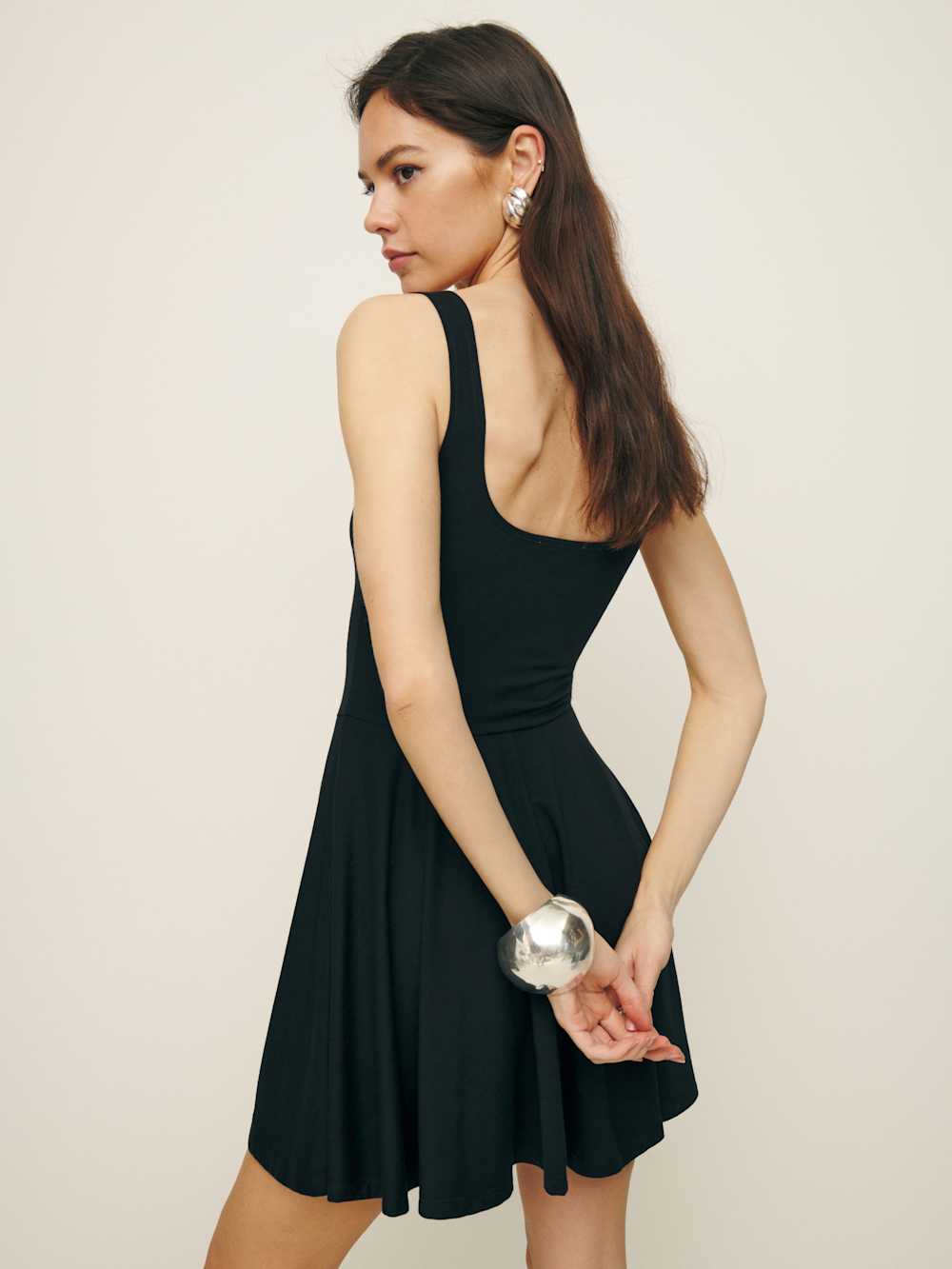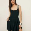 How classic. Shop the Dakota Knit Dress from Reformation, a sleeveless mini length dress with a scoop neckline, fitted bodice, and pleated skirt.