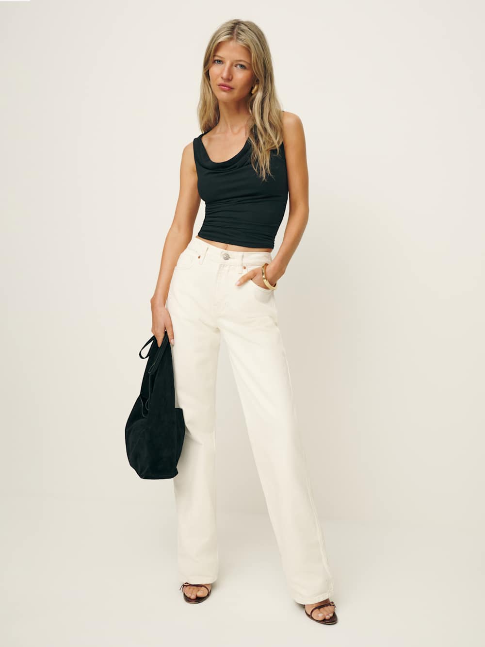 What do we have here? Shop the Darla Knit Top from Reformation, a sleeveless top with a cowl neckline.